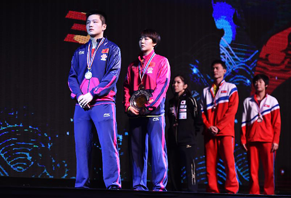 混合双打决赛在中国组合樊振东/陈梦和新加坡选手杨子/于梦雨之间进行,首局中国组合进入状态较快,以11-8先胜一局。次局他们攻势如潮,很快就以8-2领先,并以11-3的悬殊比分再胜一局。第三局樊振东/陈梦保持强劲的势头,以6-0的悬殊比分领先,杨子两次接发球造成陈梦回球失误,将比分追至4-7。樊振东积极的强攻造成于梦雨连续回出高球,陈梦连续补 板得手,以10-5拿到局点,陈梦接发球摆短,杨子回球出界,中国组合以11-5再胜一局,局分以3-0领先。