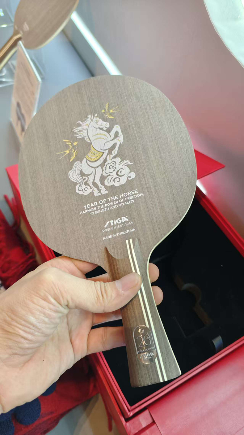 本次会议发布的新品包含底板,套胶,鞋服等众多热门装备。 底板方面: 一,斯帝卡马年贺岁限量底板