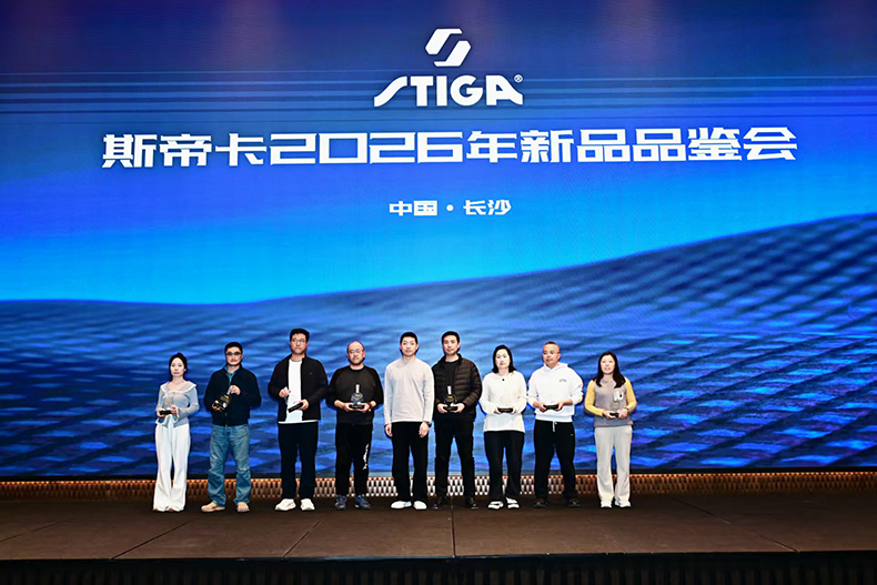 2025年12月6日,斯帝卡2026新品品鉴会在长沙岳麓万豪酒店盛大召开。 斯帝卡(北京)体育用品有限公司总经理黄大伟,斯帝卡瑞典套胶产品工程师尤纳斯和底板产品工程师菲利普,斯帝卡签约球星许昕,何卓佳,顾玉婷,闫安以及全国的上百名经销商共同出席本次品鉴会。